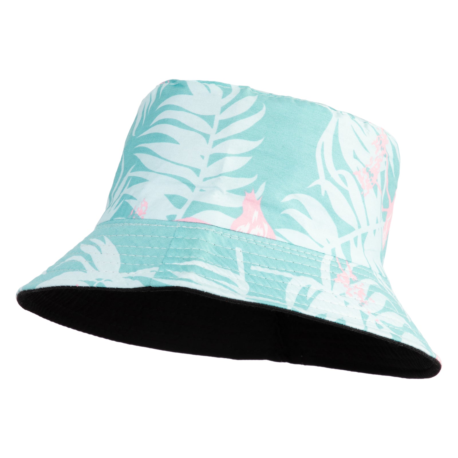 Design Style, Bring tropical charm to beach days, vacations, or sunny strolls with this playful reversible bucket hat featuring palm leaves and flamingo prints