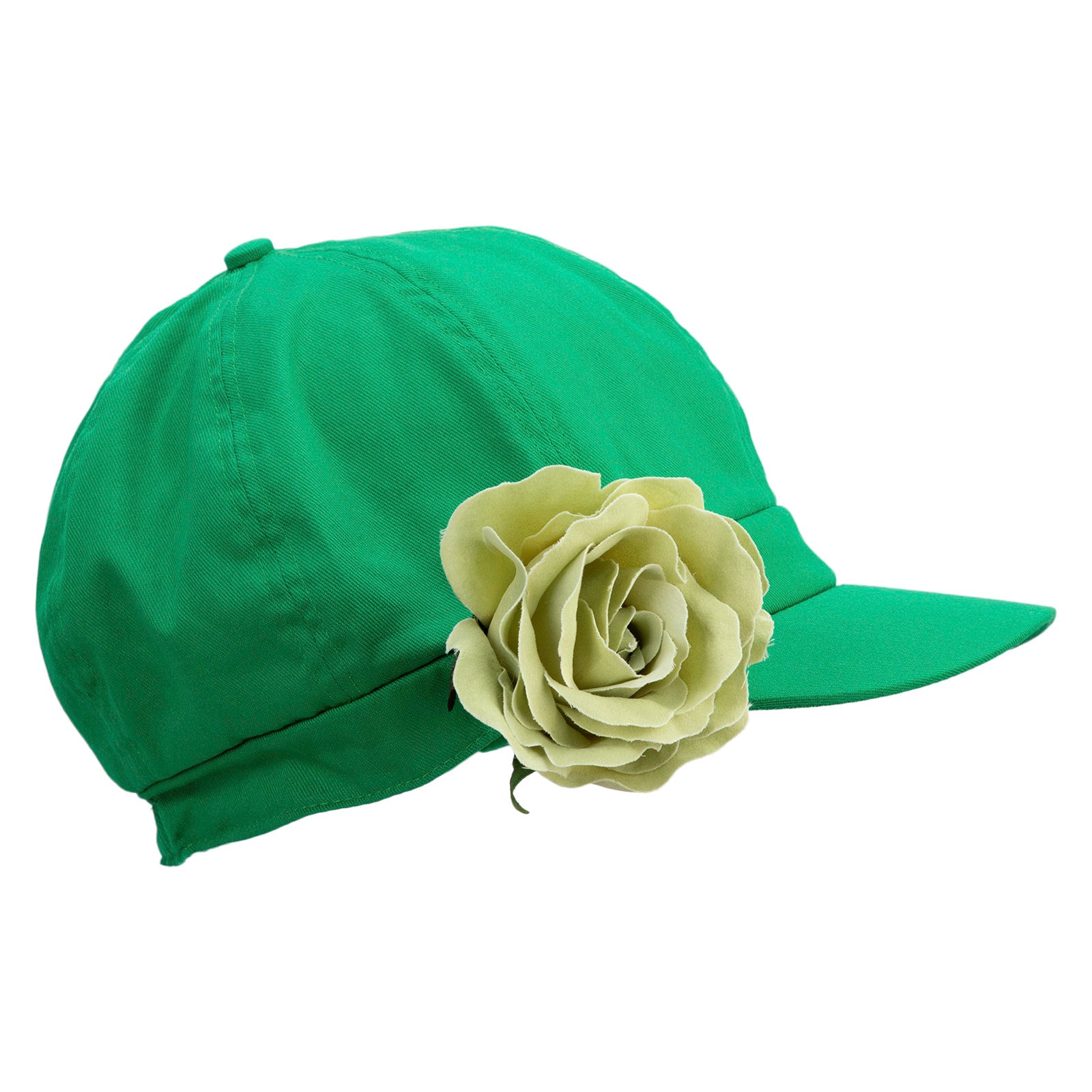 Detailing, Flower with a rhinestone in the center accentuates one side of the bill