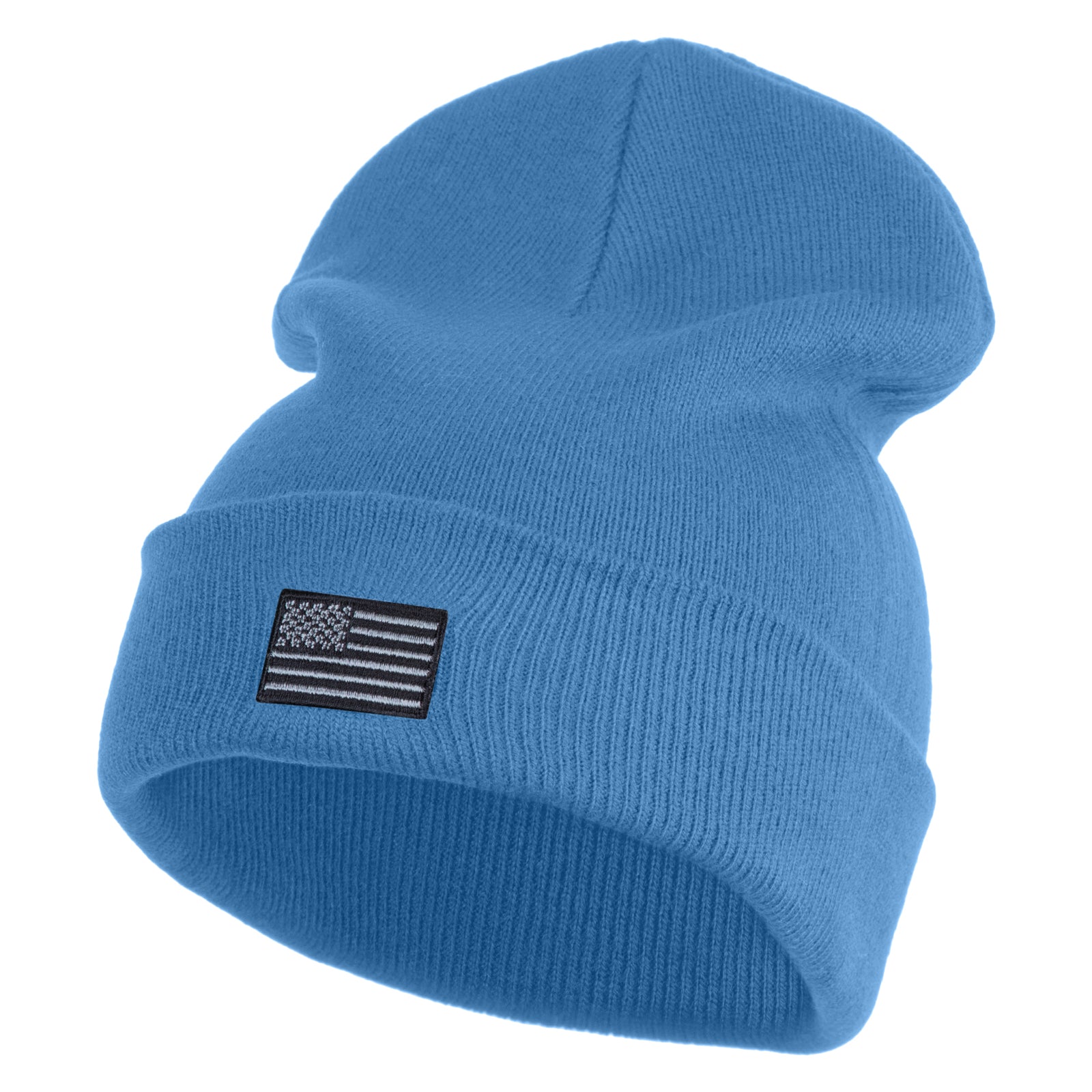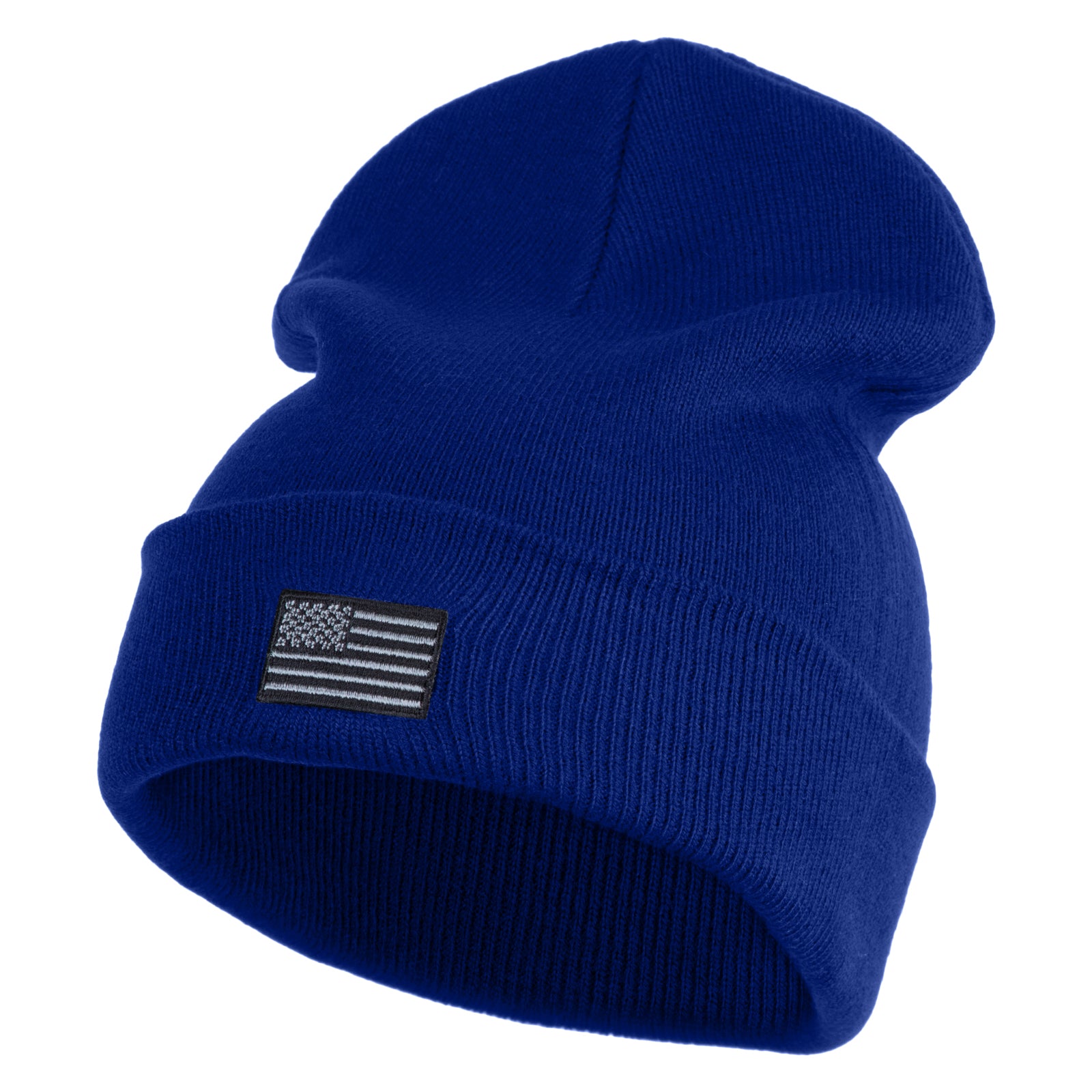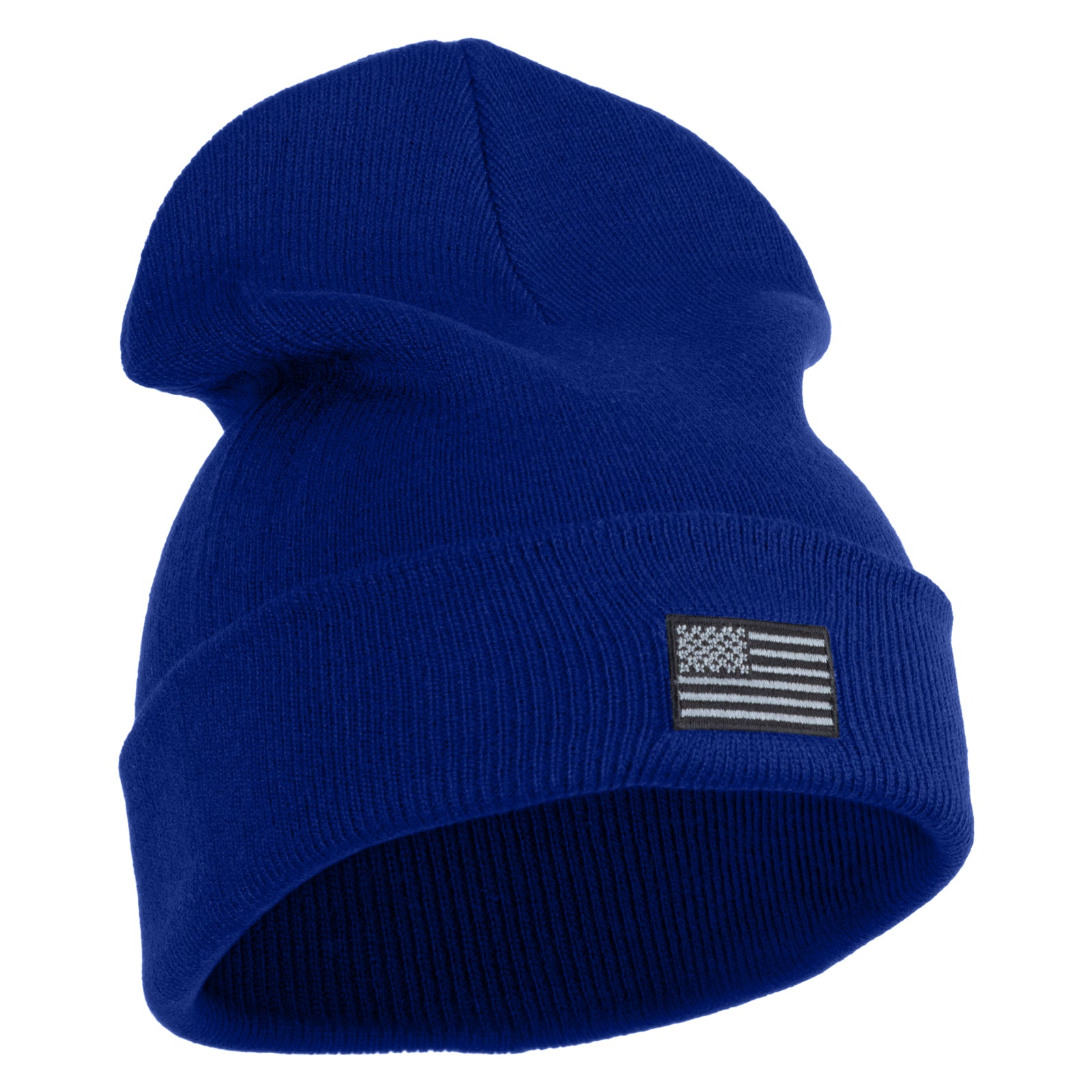 Small Patriotic Grey American Flag Iron on Embroidered Patched 12 Inch Long Knitted Beanie