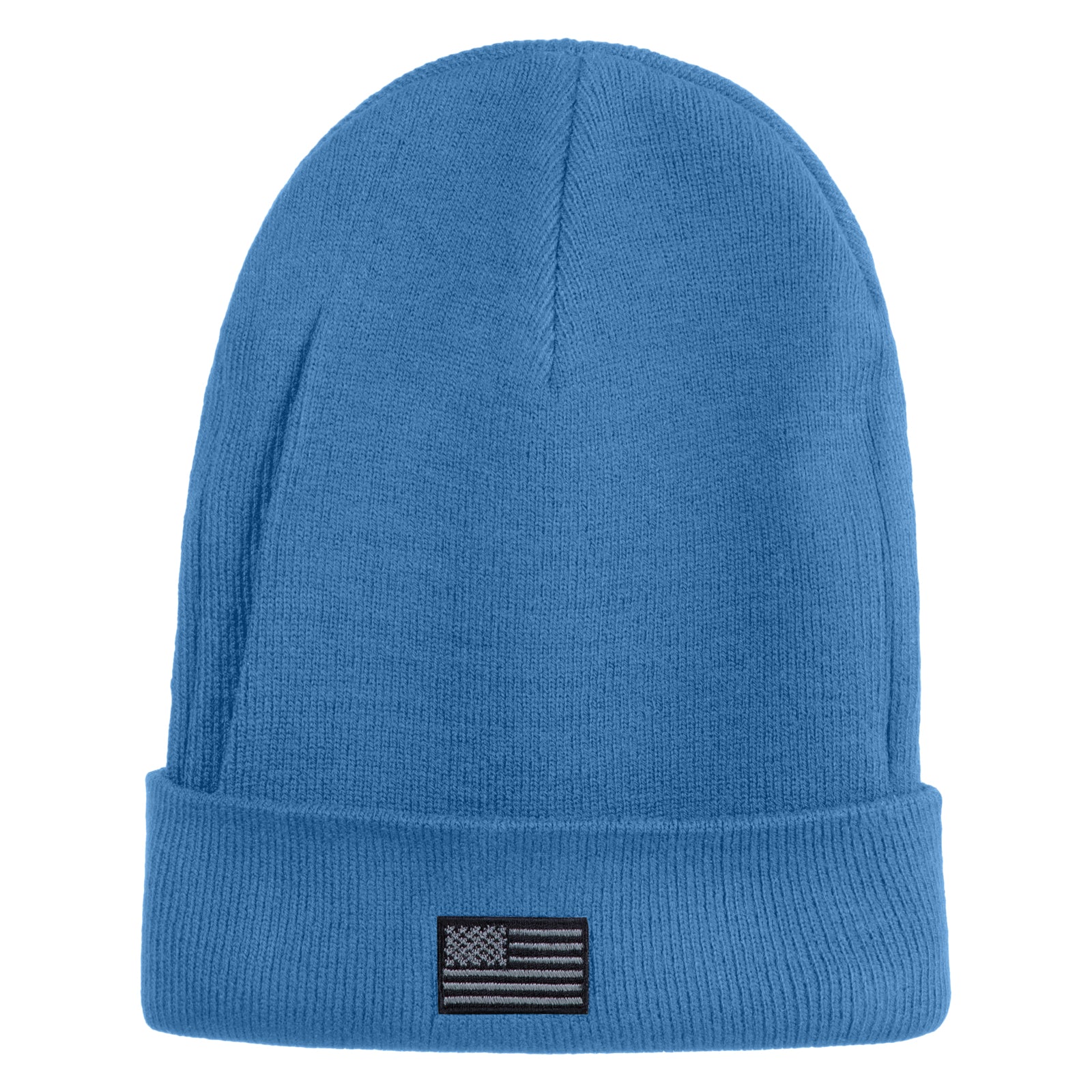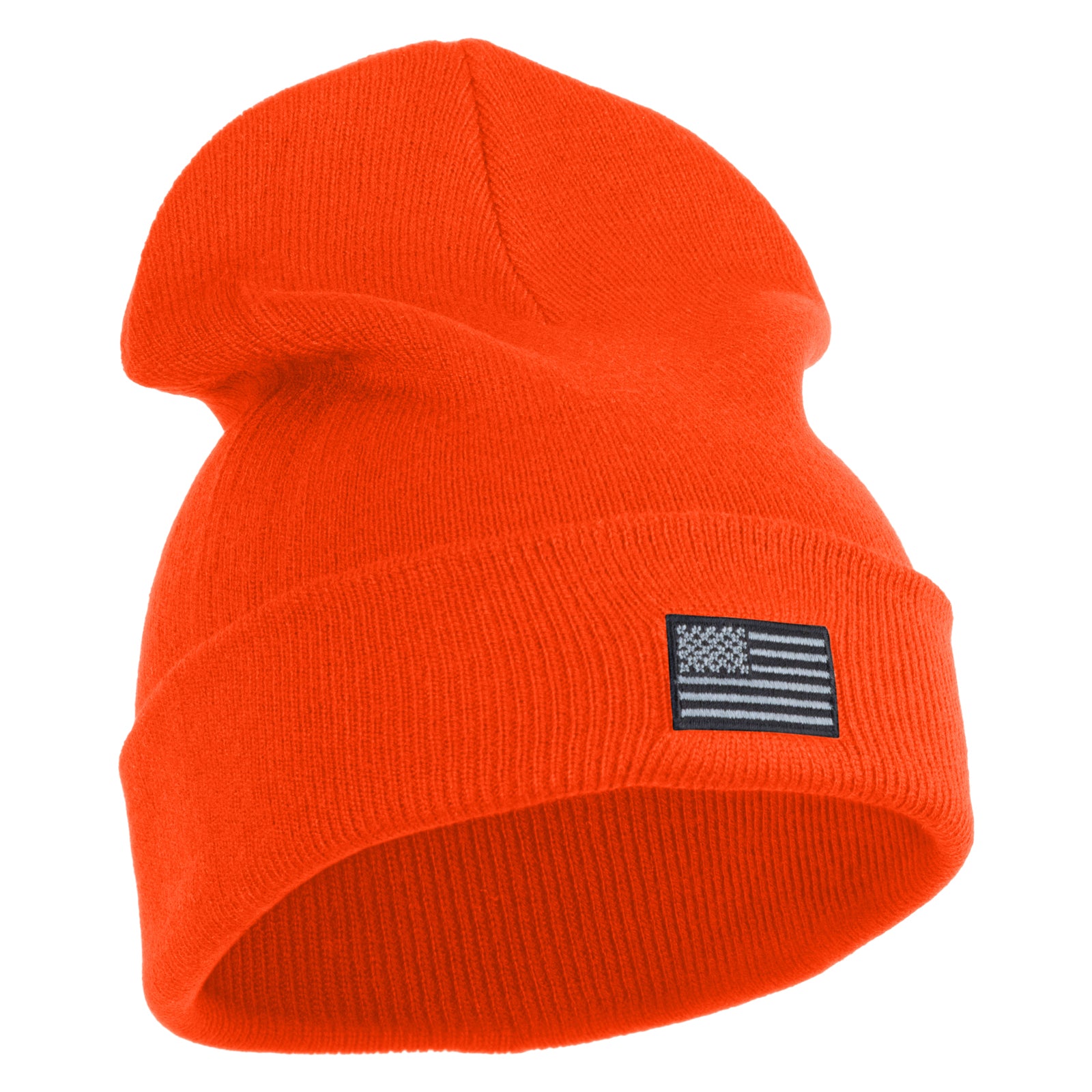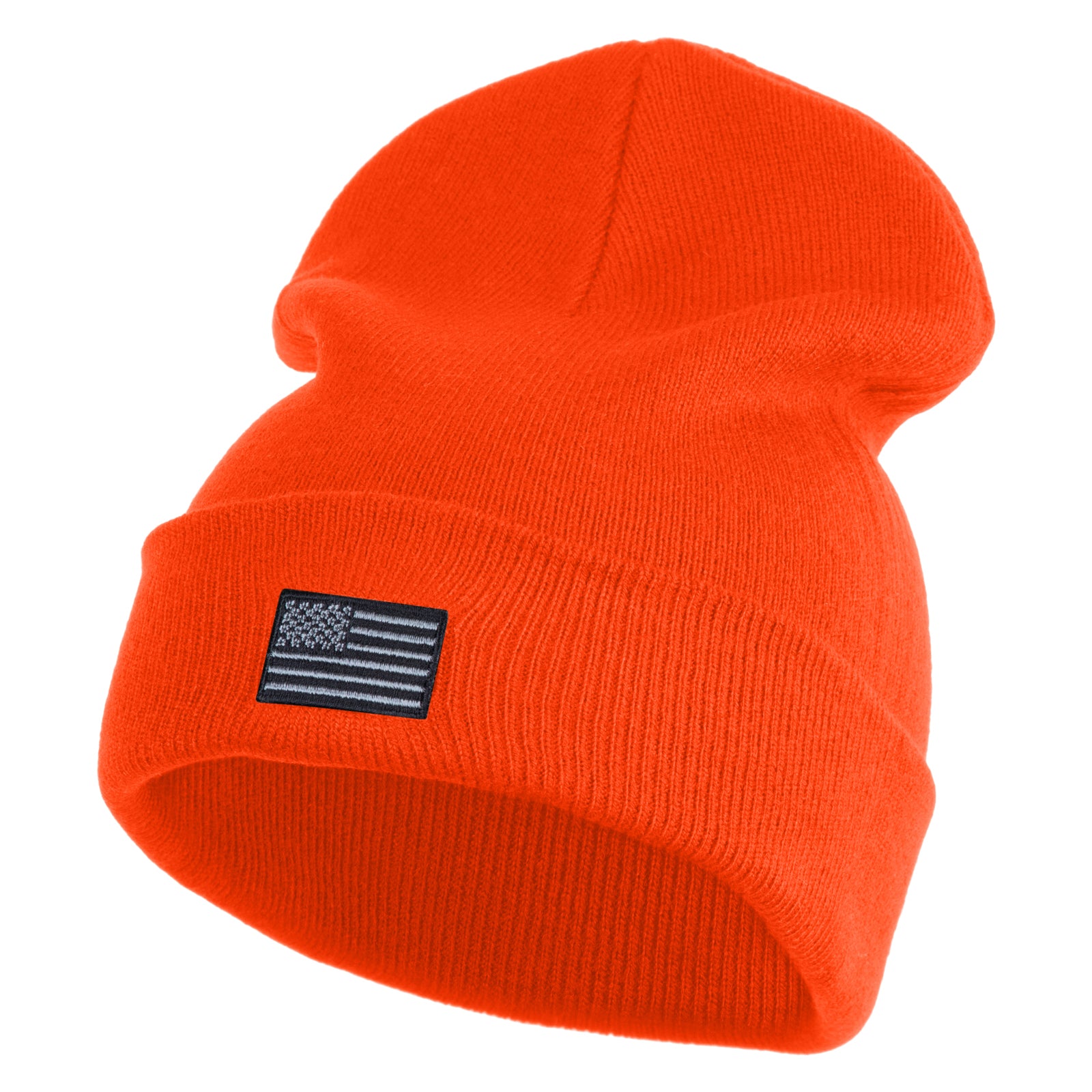 Small Patriotic Grey American Flag Iron on Embroidered Patched 12 Inch Long Knitted Beanie