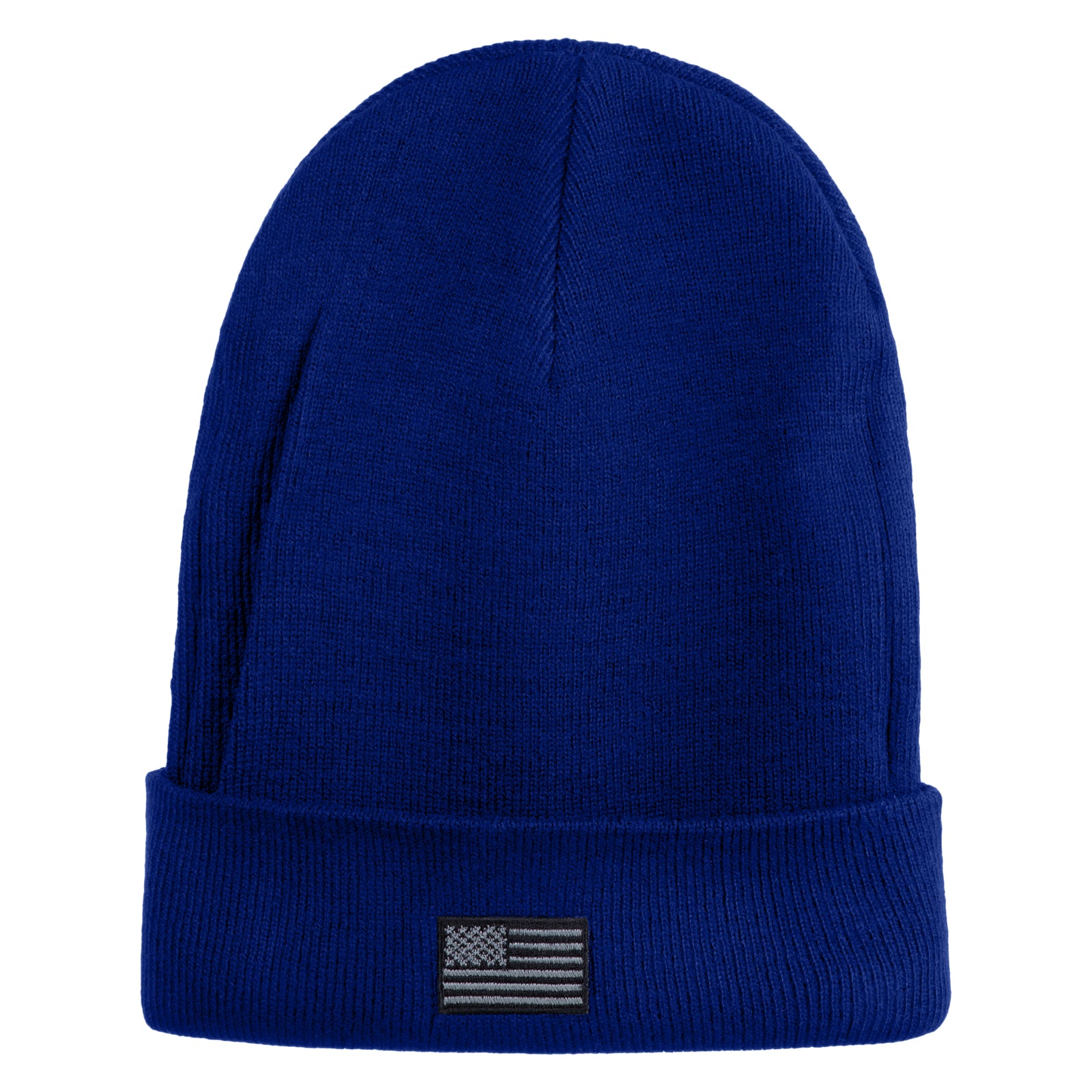 Title, Small Patriotic Grey American Flag Iron On Embroidered Patched 12 Inch Long Knitted Beanie